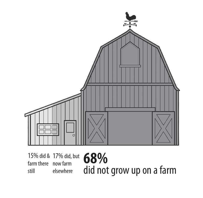 3) The majority of today’s farmers did not grown up on a farm. This may mean that the new farmers of today will have drastically different needs (training, land access, and so on) than farmers of previous generations who inherited knowledge and land from their families.