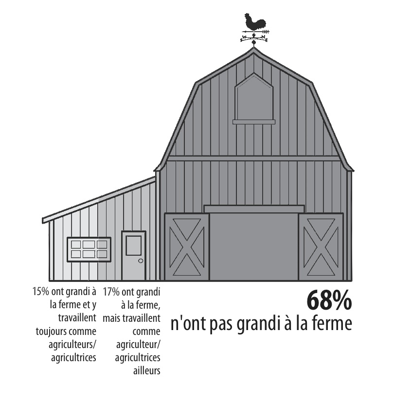3) La majorité des répondants n’ont pas été élevés à la ferme, ce qui indique que les besoins des nouveaux agriculteurs et nouvelles agricultrices (accès à la terre, accès aux connaissances et autres) diffèrent radicalement de ceux de leurs prédécesseurs, dont la plupart ont hérité des connaissances et des terres familiales.